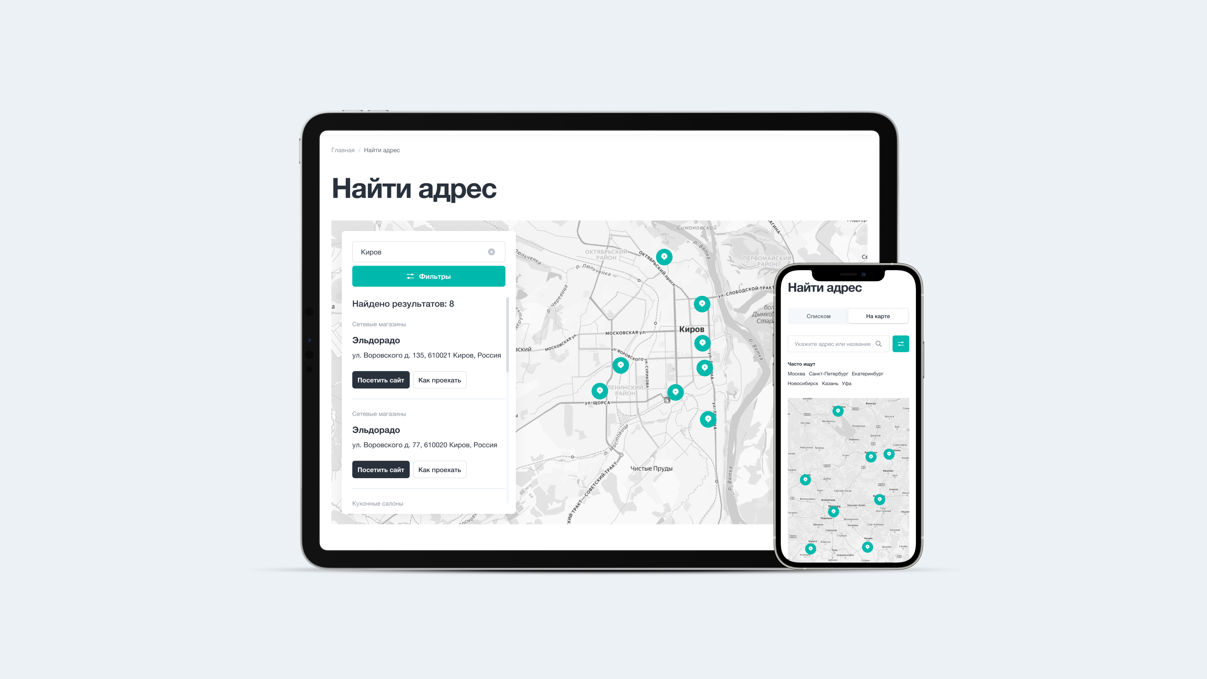 Ключевое улучшение — путь до дилера за 2 клика. Раньше пользователь проходил до 5 шагов, чтобы найти точку продаж. Мы внедрили виджет поиска дилера прямо в карточку товара. Результат: количество заявок на поиск дилера выросло на +35% — прямой прирост лидов в розничную сеть партнёров.
